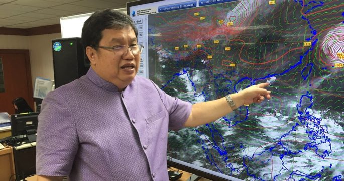 กรมอุตุฯ ประกาศเตือนฉบับที่ 6 “พายุดีเปรสชัน” ขึ้นฝั่ง อ.กุยบุรี และได้อ่อนกำลังลงเป็นหย่อมความกดอากาศต่ำ ทำให้ ภาคเหนือตอนล่าง-กลาง-ตะวันออก-ใต้ มีฝนเพิ่มและมีฝนตกหนักถึงหนักมากบางแห่ง
