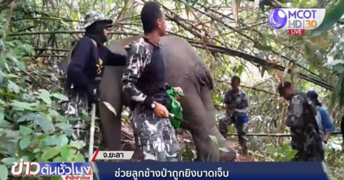 สัตวแพทย์ช่วยเหลือลูกช้างป่า เพศเมีย อายุ 4 ปี ถูกยิงขาหลังบาดเจ็บ ขณะบุกเข้าไปกินพืชผลของชาวบ้านพื้นที่บ้านสันติ 2 อ.ธารโต จ.ยะลา