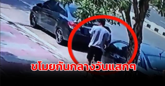 หนุ่มขับรถมาจอดเทียบด้านหน้ารถรุ่นเดียวกัน ลงมางัดกระจกมองข้าง กลางวันแสกๆ ทั้งที่มีรถวิ่งพลุกพล่าน