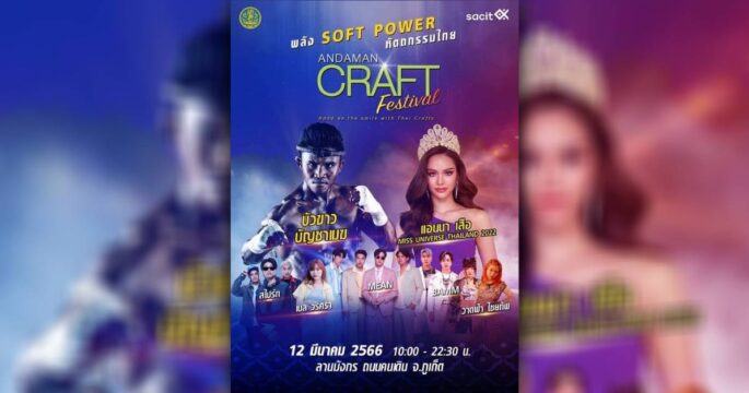 “ทิพานัน”ชวนเที่ยวงาน “Andaman Craft Festival” ที่ลานมังกร ถนนคนเดิน ภูเก็ต 12 มีนาคมนี้ หวังกระตุ้นเศรษฐกิจ 7 พันล้าน ย้ำผลงาน “พล.อ.ประยุทธ์” ดันซอฟต์พาวเวอร์สร้างรายได้เป็นรูปธรรม