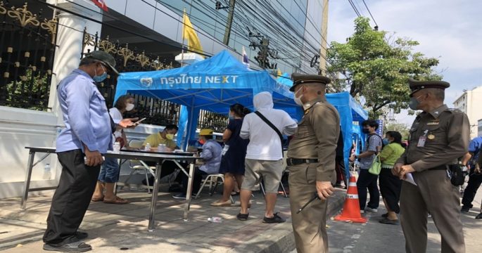 ประชาชนกว่า 600 ราย ยังทยอยยื่นร้องทุกข์ที่หน้ากระทรวงคลัง ต่างได้รับผลกระทบจากภัยโควิด-19 ระดมเจ้าหน้าที่ทุกกรมช่วยรับเรื่องผู้ลงทะเบียน