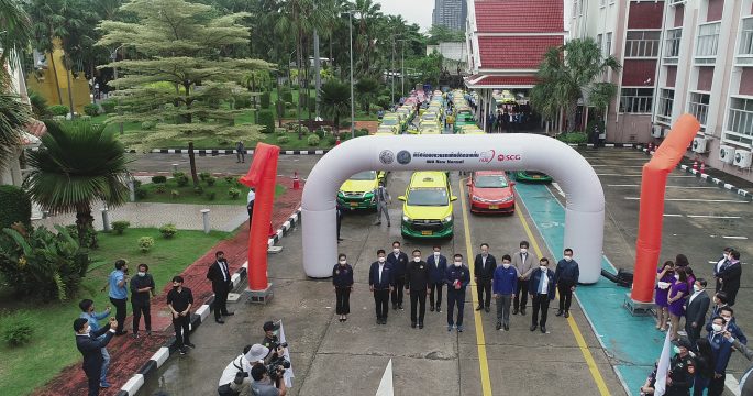 รัฐมนตรีว่าการกระทรวงคมนาคม ปล่อยขบวนรถแท็กซี่ติดฉากกั้นภายในห้องโดยสาร ป้องกันละอองฝอย จากการพูดคุย ไอ จาม ยกระดับความปลอดภัยแบบ New Normal เพิ่มความมั่นใจในการใช้บริการ นำร่องในรถแท็กซี่ให้ครบ 3,000 คัน ภายในเดือนตุลาคม 2564