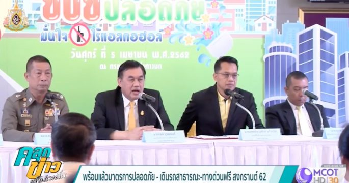 กระทรวงคมนาคมตั้งเป้าลดอุบัติเหตุและผู้เสียชีวิตลงร้อยละ 5 พร้อมอำนวยความสะดวกการเดินทางช่วงเทศกาลสงกรานต์ 2562