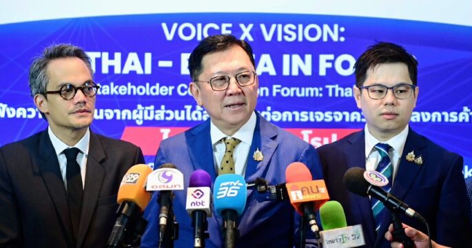 กรุงเทพฯ 21 ส.ค. – กระทรวงพาณิชย์ โดยสถาบันระหว่างประเทศเพื่อการค้าและการพัฒนา (องค์การมหาชน) หรือ ITD ร่วมกับกรมเจรจาการค้าระหว่างประเทศ และผู้แทนการค้าไทย เปิดเวที “Voice x Vision: Thai–EU FTA in Focus” ระดมทุกภาคส่วนสะท้อนความเห็น ก่อนการเจรจารอบที่ 7 เดือน ก.ย.นี้ มุ่งปิดดีลภายในปี 2568 หวังเปิดประตูเศรษฐกิจครั้งสำคัญ ดึงดูดการลงทุนและยกระดับขีดความสามารถการแข่งขันของไทย เวทีดังกล่าวจัดขึ้นเพื่อรับฟังความคิดเห็นจากผู้มีส่วนได้ส่วนเสียทุกภาคส่วน ตั้งแต่ภาครัฐ เอกชน เกษตรกร ผู้ประกอบการ SMEs ภาคประชาสังคม และภาควิชาการ โดยเน้นการหารือเชิงนโยบายด้านการเปิดตลาดสินค้า บริการ และการลงทุน เพื่อประกอบการกำหนดท่าทีไทยก่อนเจรจาฯ รอบใหม่กับสหภาพยุโรป (EU) นายจตุพร บุรุษพัฒน์ รัฐมนตรีว่าการกระทรวงพาณิชย์ กล่าวปาฐกถาพิเศษว่า การเจรจา FTA ไทย–EU เป็นหนึ่งในภารกิจสำคัญของรัฐบาล เพราะ EU เป็นตลาดเศรษฐกิจขนาดใหญ่และมีมาตรฐานสูง หากสามารถสรุปผลได้ภายในปี 2568 […]