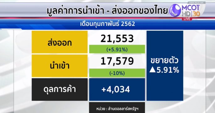 การเลือกตั้งส่งผลให้ดัชนีความเชื่อมั่นอุตสาหกรรมสูงสุดในรอบ 6 ปี ด้านกระทรวงพาณิชย์เผยการส่งออกเดือนกุมภาพันธ์กลับมาเป็นบวกเกือบร้อยละ 6 และงัดแผนเอสเอ็มอี โปรแอคทีฟ หนุนส่งออกต่อเนื่อง
