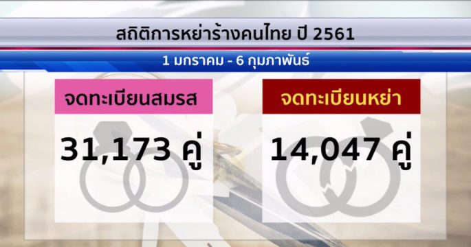ข้อมูลจากกระทรวงมหาดไทย ชี้ชัดในรอบ 10 ปีที่ผ่านมา มีแนวโน้มคู่รักคนไทยหย่าร้างเพิ่มขึ้นถึงร้อยละ 12