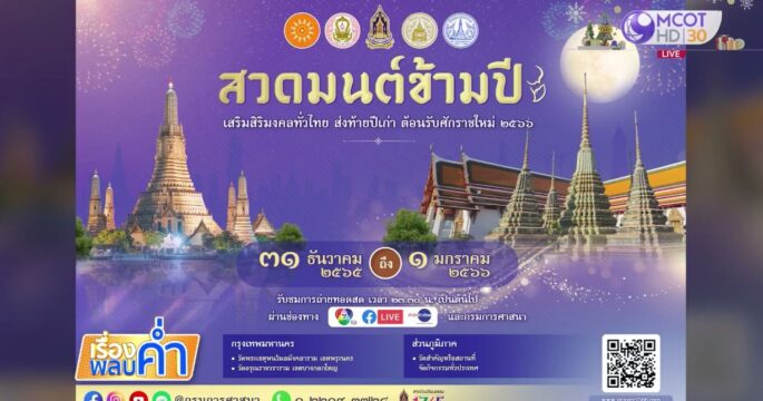 กรมการศาสนา กระทรวงวัฒนธรรม ขอเชิญชวนประชาชาชนร่วมกิจกรรม สวดมนต์ข้ามปี เสริมสิริมงคลทั่วไทย ส่งท้ายปีเก่า ต้อนรับศักราชใหม่ 2566