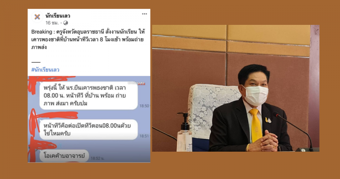 เลขาฯ กพฐ.มองสองด้านส่งการบ้านภาพถ่ายยืนเคารพธงชาติหน้าทีวีตอน 8 โมงเช้า อาจเป็นข้อตกลงร่วมกันระหว่างครู นักเรียน ในการสอนออนไลน์ และเฉพาะแค่บางโรงเรียน ไม่ใช่ทั้งหมด