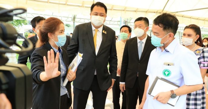 กรุงเทพฯ 16 มิ.ย.- 2 กระทรวงลงพื้นที่ตรวจเยี่ยมและให้กำลังใจผู้ประกันตนมาตรา 33 ในพื้นที่กรุงเทพมหานครที่มาฉีดวัคซีนโควิด-19 รวมถึงบุคลากรทางการแพทย์ ที่ศูนย์ฉีดวัคซีน บริษัท โรงงานฟุตบอลไทย สปอร์ตติ้ง กู๊ดส์ จำกัด เขตหนองจอก กทม.