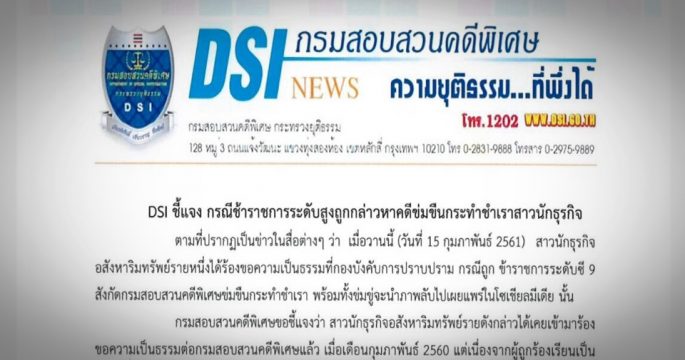 ดีเอสไอ ออกหนังสือชี้แจงกรณีข้าราชการระดับสูงถูกกล่าวหา คดีข่มขืนกระทำชำเราสาวนักธุรกิจ ยืนยันให้ความเป็นธรรมทุกฝ่าย