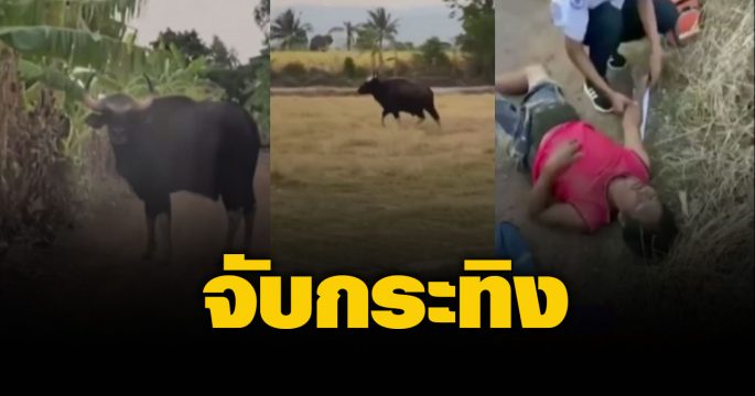 ช่วยกันจับได้แล้วกระทิงหนุ่ม หนักกว่า 600 กิโลกรัม ที่หลงป่า แล้วก่อเหตุไล่ขวิดชาวบ้าน