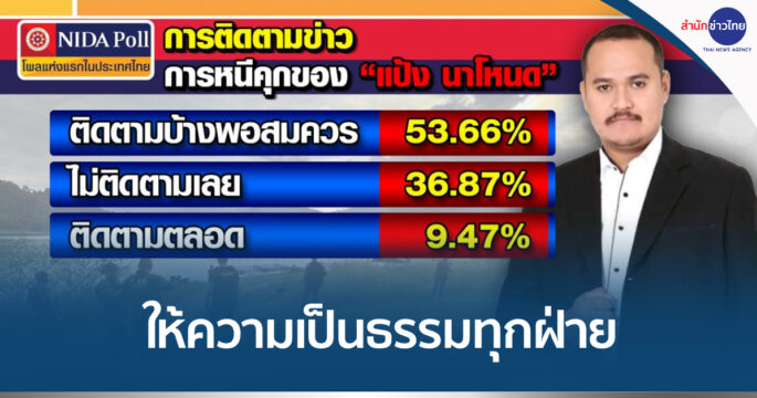 นิด้าโพล เผยผลสำรวจประชาชน ชี้ “แป้ง นาโหนด” หนีคุก กระทบกระบวนการยุติธรรมของไทยอย่างมาก แนะหน่วยงานที่เกี่ยวข้องตรวจสอบข้อร้องเรียนของ “แป้ง นาโหนด” พร้อมทั้งให้ความเป็นธรรมกับทุกฝ่าย