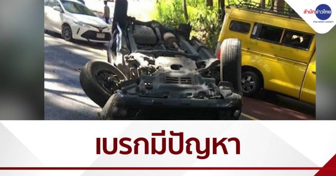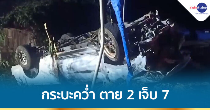 กระบะเสียหลักพลิกคว่ำ ไฟลุก เจ็บ 7 ตาย 2