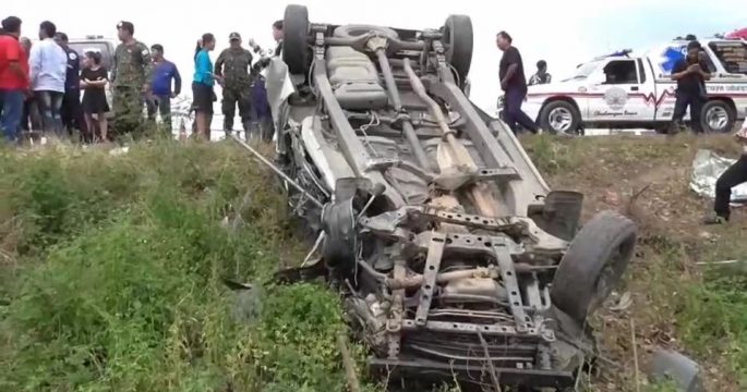 สั่งตรวจสอบถนนจุดเกิดเหตุรถทัวร์คว่ำ-กระบะชนต้นไม้