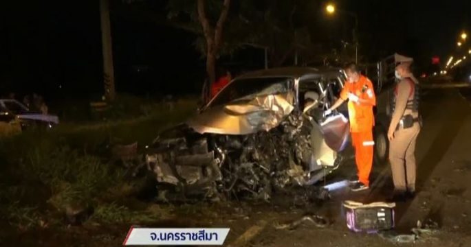 อีกแค่ 2 กม.จะถึงบ้าน! กระบะซิ่งแซงซ้ายเสียหลักชนต้นไม้ สาวตั้งครรภ์ 5 เดือนเสียชีวิต บาดเจ็บสาหัสอีก 3 ราย