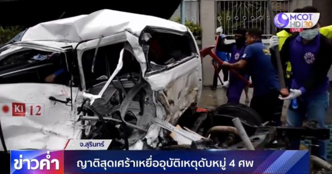 ครอบครัวสุดเศร้า อุบัติเหตุรถกระบะเสียหลักพุ่งข้ามเกาะกลางถนนชนกลางลำรถปาเจโรที่วิ่งสวนมา ดับคาที่ 4 ศพ บางคนเพิ่งเรียนจบ เป็นเสาหลักของครอบครัว