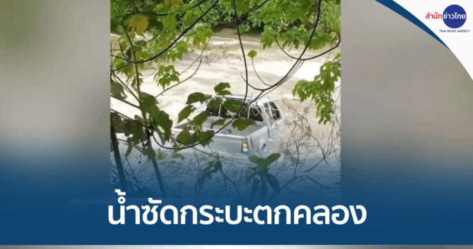 นาทีระทึก! น้ำป่าซัดกระบะตกคลอง