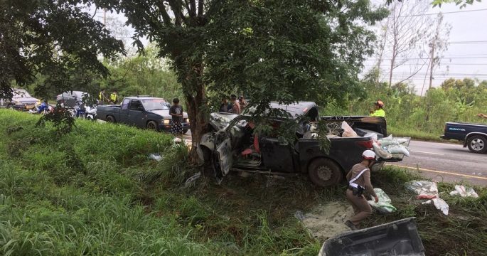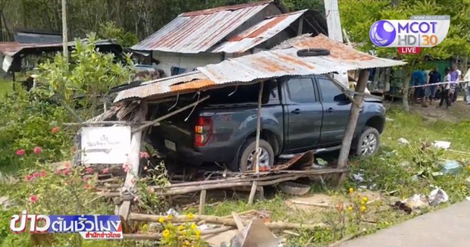 กระบะหลับในแหกโค้งชนเพิงขายขนมจีน จ.กระบี่ เจ็บสาหัส 1 คนขับเผ่น