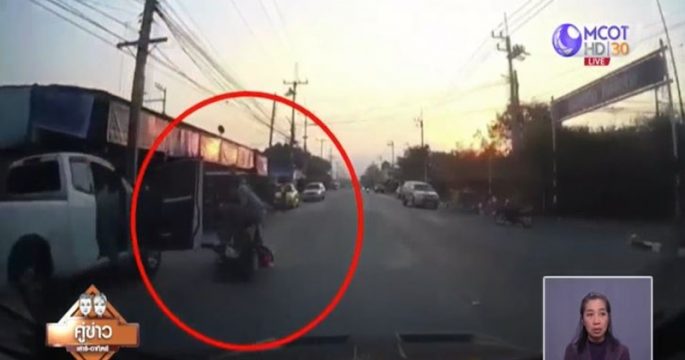 เชียงราย 16 เม.ย.-วงจรปิดจับภาพวินาทีระทึก กระบะเสียหลักปีนข้ามเกาะกลางถนน พุ่งชนรถฝั่งตรงข้ามพลิกคว่ำ กล้องวงจรปิดจับภาพเหตุการณ์ ขณะที่รถกระบะสีดำขับจาก อ.แม่จัน มุ่งหน้าไป อ.แม่สาย จ.เชียงราย ซึ่งก่อนหน้านั้นมีฝนตกทำให้พื้นถนนเปียก รถจึงเสียหลักพุ่งข้ามเกาะกลางถนนชนประสานงาเข้ากับรถกระบะสีบรอนซ์ทองที่วิ่งสวนมาอย่างจัง เป็นเหตุให้กระบะสีดำพลิกคว่ำ เจ้าหน้าที่กู้ภัยรีบช่วยเหลือนำผู้ติดในรถออกมา พบผู้บาดเจ็บทั้งหมด 5 คน คนหนึ่งเป็นเด็กอายุ 4 ขวบ มีแผลถลอกตามร่างกายเล็กน้อย เจ้าหน้าที่ได้ปฐมพยาบาลเบื้องต้น และนำส่งโรงพยาบาลแม่สาย โชคดีที่ผู้ประสบเหตุทั้งหมดได้รับบาดเจ็บเพียงเล็กน้อยเท่านั้น.-สำนักข่าวไทย