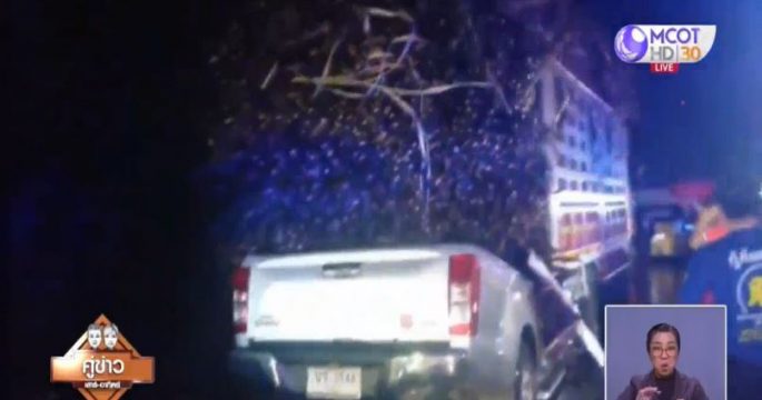 กระบะเสียหลักปีนข้ามเกาะกลางถนนเจ็บ 5