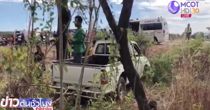 กระบะเสียหลักลงข้างทาง และไถลไปชนตอไม้ ที่ถนนหน้าโรงเรียนบ้านหนองหิน ร่างคนขับและคนนั่งมา ได้กระเด็นออกนอกรถเสียชีวิตและบาดเจ็บ