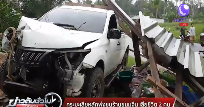กระบะเสียหลักแหกโค้งพุ่งชนร้านขนมจีน ทำให้สามี-ภรรยาลูกค้าในร้าน เสียชีวิตทันที