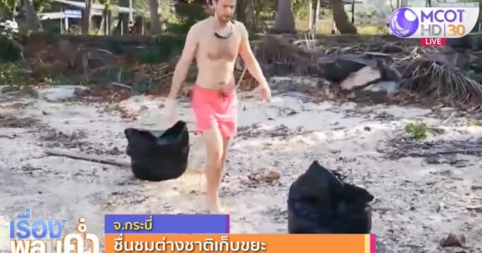 เรื่องน่าประทับใจบริเวณหาดแหลมป่อง จ.กระบี่ เมื่อนักท่องเที่ยวต่างชาติช่วยกันเก็บขยะ