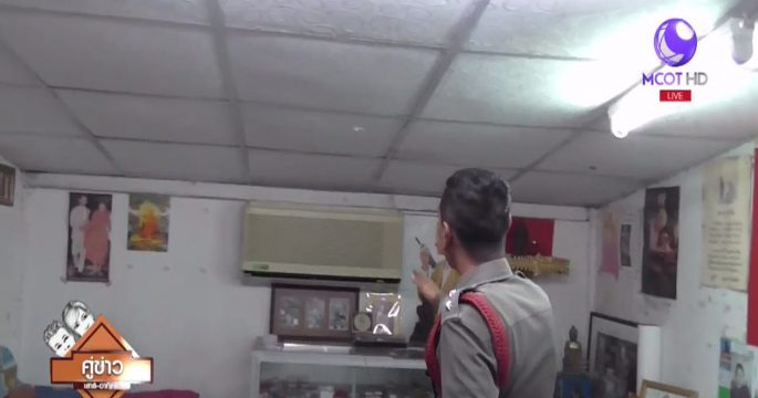 กระสุนปริศนาพุ่งทะลุหลังคาศูนย์ตรวจสภาพหวิดเจาะศีรษะผู้จัดการ แต่แฉลบเข้าตู้พระแทนจนกระจกแตกกระจาย เจ้าตัวเชื่อสิ่งศักดิ์สิทธิ์ช่วยรอด