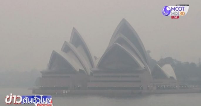หมอกควันพิษจากไฟป่าปกคลุมนครซิดนีย์ กระแสลมที่พัดรุนแรงทำให้การดับไฟป่าเป็นไปด้วยความยากลำบาก