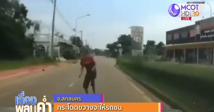 โซเชียลแห่แชร์คลิปชายกระโดดยืนกลางถนนขวางทางรถที่กำลังวิ่ง โชคดีรถขับมาช้าจึงเบรกทัน พร้อมตั้งคำถามมีเจตนาอะไร