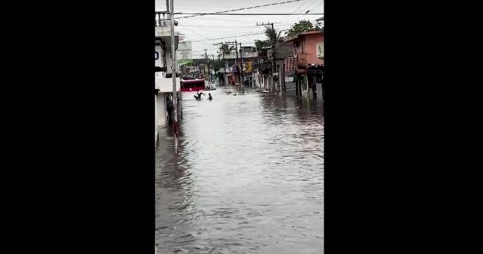เบรากรุซ 11 ก.ค.- ชาวบ้านในรัฐเบรากรุซ ทางภาคตะวันออกของเม็กซิโก เปลี่ยนท้องถนนที่ถูกน้ำท่วมให้กลายเป็นสนามเด็กเล่น ด้วยการเล่นกระโดดน้ำบนถนนที่แปรสภาพเป็นลำคลอง รอยเตอร์เผยแพร่คลิปภาพเห็นชาย 3 คนเล่นกระโดดน้ำบนถนน ท่ามกลางยวดยานและบ้านเรือนที่จมน้ำ สื่อท้องถิ่นเม็กซิโกรายงานว่า ฝนที่ตกหนักจากร่องความกดอากาศต่ำที่พัดกระหน่ำพื้นที่ชายฝั่งตั้งแต่วันอังคารทำให้เกิดน้ำท่วมถนนสายต่าง ๆ ในรัฐเบรากรุซอย่างรวดเร็ว เจ้าหน้าที่เผยว่า วัดปริมาณฝนได้มากกว่า 70 มิลลิเมตรภายในเวลาเพียง 2 ชั่วโมง ถือเป็นปริมาณฝนที่มากผิดปกติ.-816(814).-สำนักข่าวไทย