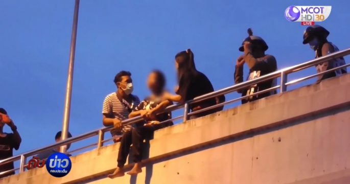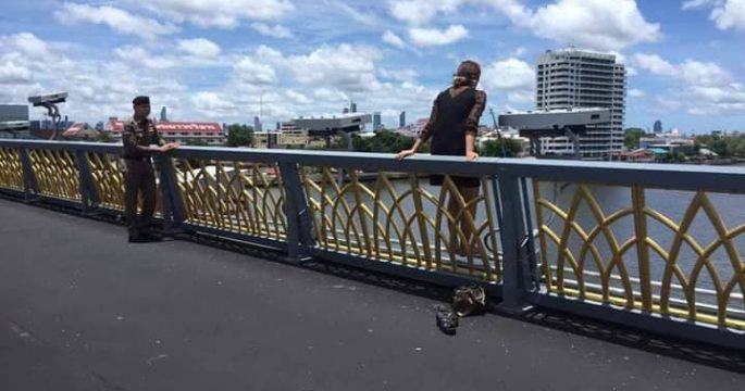 สาวทะเลาะแฟนจะโดดสะพาน กล่อมอุ้มลงมาได้
