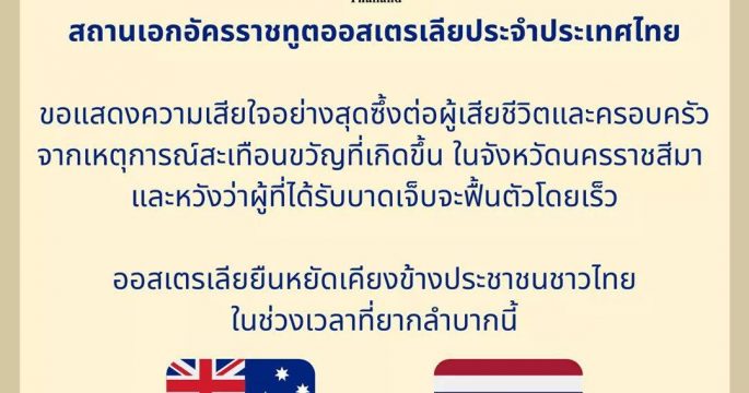 อียู-ออสเตรเลียร่วมแสดงความเสียใจเหตุกราดยิงที่โคราช