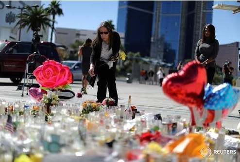 ชาวอเมริกันแสดงความไว้อาลัยกับเหยื่อผู้เคราะห์ร้ายจากเหตุกราดยิงที่นครลาสเวกัส เมื่อคืนวันอาทิตย์