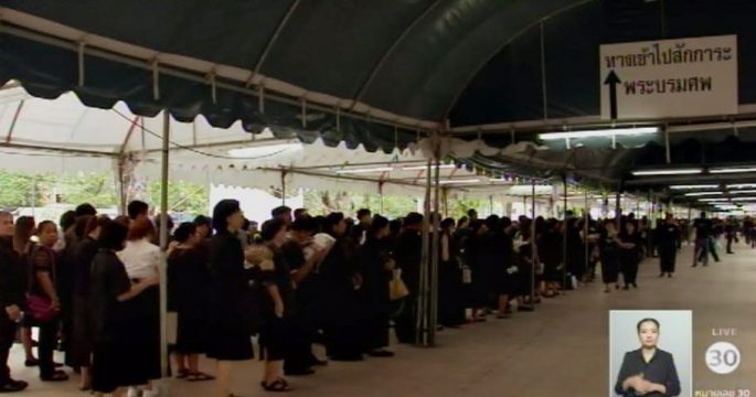 เเต่ละวันมีประชาชนเดินทางมาต่อเเถว เพื่อเข้ากราบถวายบังคมพระบรมศพ พระบาทสมเด็จพระปรมินทรมหาภูมิพลอดุลยเดช เฉลี่ย 20,000 คน ด้วยประชาชนที่มีจำนวนมากทำให้ต้องจัดระเบียบในการจัดคิว