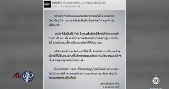 จีเอ็มเอ็มทีวี ต้นสังกัดของพิธีกรชื่อดัง น็อต อัครณัฐ ออกหนังสื่อชี้แจงยุติสัญญากับพิธีกรชื่อดังแล้ว มีผลวันนี้เป็นต้นไป