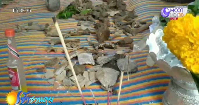 ขุดพบโครงกระดูกคล้ายมนุษย์โบราณนั่งกอดเข่าถือไห บริเวณกลางทุ่งนาในหมู่บ้านหนองตานา อ.แก้งคร้อ จ.ชัยภูมิ ชาวบ้านที่ทราบข่าวแห่กราบไหว้ขอพรและโชคลาภ