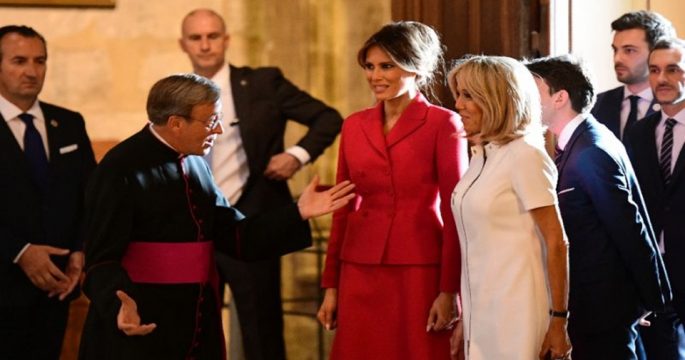 นางเมลาเนีย ทรัมป์ สตรีหมายเลขหนึ่งสหรัฐเข้าเยี่ยมชมมหาวิหารนอเทรอดามที่กรุงปารีสร่วมกับนางบรีฌิต มาครง ภริยาประธานาธิบดีฝรั่งเศสในวันพฤหัสบดี