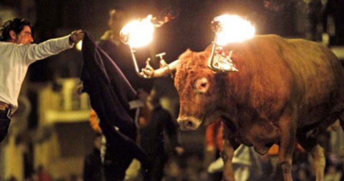 กลุ่มผู้ประท้วงหลายพันคนเดินขบวนตามต้องถนนในใจกลางกรุงมาดริด เพื่อเรียกร้องให้สั่งห้ามเทศกาลสู้วัวกระทิงในสเปน