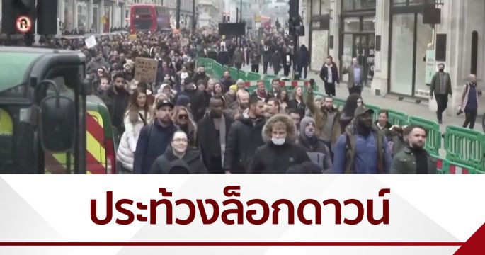 กลุ่มผู้ประท้วงมาตรการล็อกดาวน์และต่อต้านวัคซีนต้านโควิด-19 รวมตัวกันกลางกรุงลอนดอน ก่อนพากันเดินขบวนไปตามถนนออกซ์ฟอร์ด และถนนรีเจนท์ ย่านการค้าสำคัญของกรุงลอนดอน