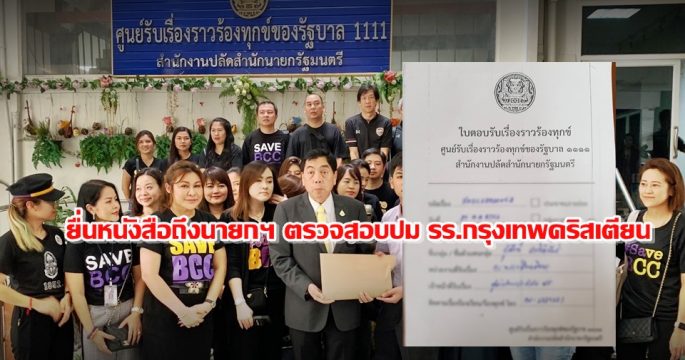 กลุ่ม SAVE BCC ยื่นหนังสือถึงนายกรัฐมนตรี และ ส.ส.ให้ตรวจสอบปมขัดแย้ง ร.ร.กรุงเทพคริสเตียน