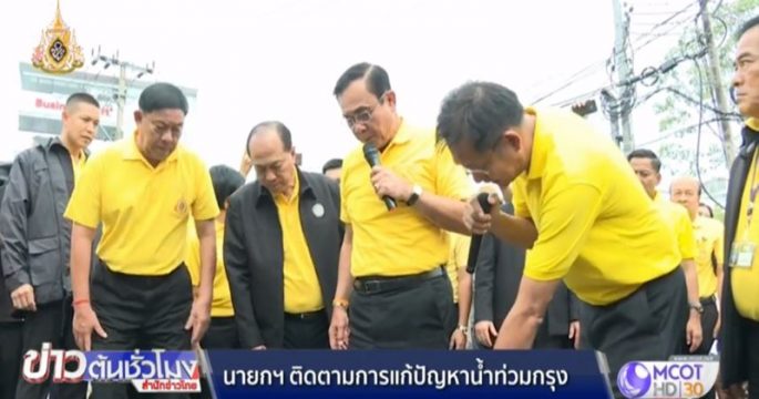 นายกรัฐมนตรี นำคณะลงพื้นที่ติดตามการป้องกันแก้ปัญหาน้ำท่วมขังในกรุงเทพฯ กำชับทุกฝ่ายร่วมมือกันแก้ปัญหาเรื่องการระบายน้ำ จุดใดยังมีปัญหาต้องเร่งแก้ไข