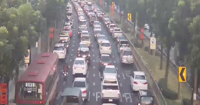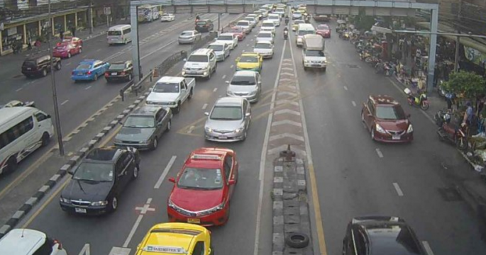 การจราจรเช้าวันศุกร์ ถนนดินแดง จากแยกใต้ทางด่วนดินแดง มุ่งหน้าไปอนุสาวรีย์ชัยสมรภูมิ รถมาก เคลื่อนตัวช้า