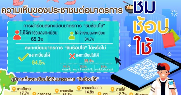 กรุงเทพโพลล์ สำรวจความเห็นประชาชนต่อมาตรการ ชิม ช้อป ใช้ พบร้อยละ 65.6 ช่วยให้ใช้เงินได้คล่องตัวขึ้นค่อนข้างมากถึงมากที่สุด ในการพาครอบครัวไปเที่ยวกิน ช้อป ร้อยละ 55.7 รอการขยายเวลาและเพิ่มจำนวนผู้ลงทะเบียน และร้อยละ50.4 เห็นด้วยหากจะมีมาตรการกระตุ้นเศรษฐกิจแบบนี้อีกในปีหน้า