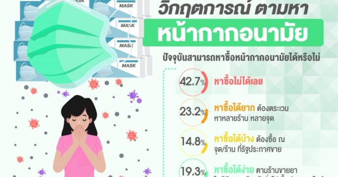 โพลล์พบประชาชน ร้อยละ 58.0 ชี้ปัญหาหน้ากากขาดแคลน อาจเกิดการกักตุนหน้ากากเอื้อนายทุนเก็งกำไร ร้อยละ 56.4 รัฐควรเปลี่ยนตัวคนจัดการปัญหาหน้ากาก