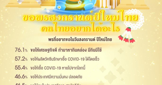 กรุงเทพโพลล์ พบว่าพรที่ประชาชนอยากขอมากที่สุดในวันสงกรานต์ ปีใหม่ไทยคือ ขอให้เศรษฐกิจดี ทำมาหากินคล่อง มีกินมีใช้