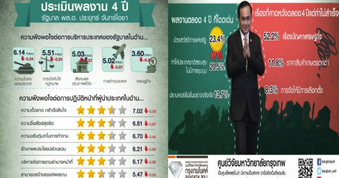 ขณะที่ เกินครึ่งพอใจกับการปฏิบัติหน้าที่ในฐานะนายกรัฐมนตรี เห็นว่า เด็ดขาด ซื่อสัตย์ ทุ่มเท