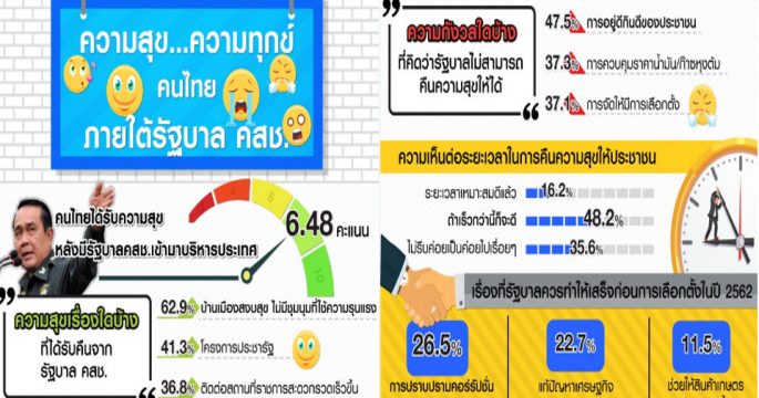 ผลโพลพบประชาชนมีความสุขปานกลางภายใต้รัฐบาล คสช.