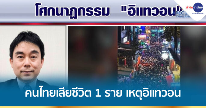 อัครราชทูต สถานทูตไทย ณ กรุงโซล เผยมีคนไทยเสียชีวิตจากเหตุเหยียบกันตาย เป็นผู้หญิง อายุ 27 ปี กำลังตรวจสอบกับตำรวจเกาหลีใต้ และ รพ. เพื่อประสานครอบครัวและญาติทราบ