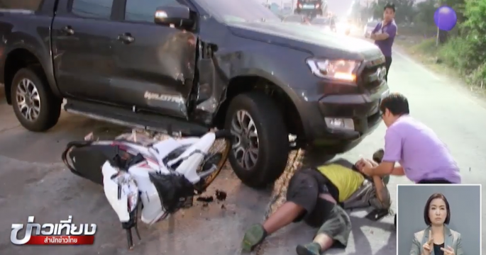 เปิดภาพนาทีชีวิต ขณะที่นักศึกษาเทคนิคฉะเชิงเทรา ขี่รถจักรยานยนต์จะไปเรียน เกิดมีรถกระบะเลี้ยวกลับรถกลางถนน จึงพุ่งชนกลางลำเข้าเต็มแรง ร่างกระเด็นเข้าใต้รถกระบะเกือบโดนทับ รอดชีวิตแต่อาการสาหัส
